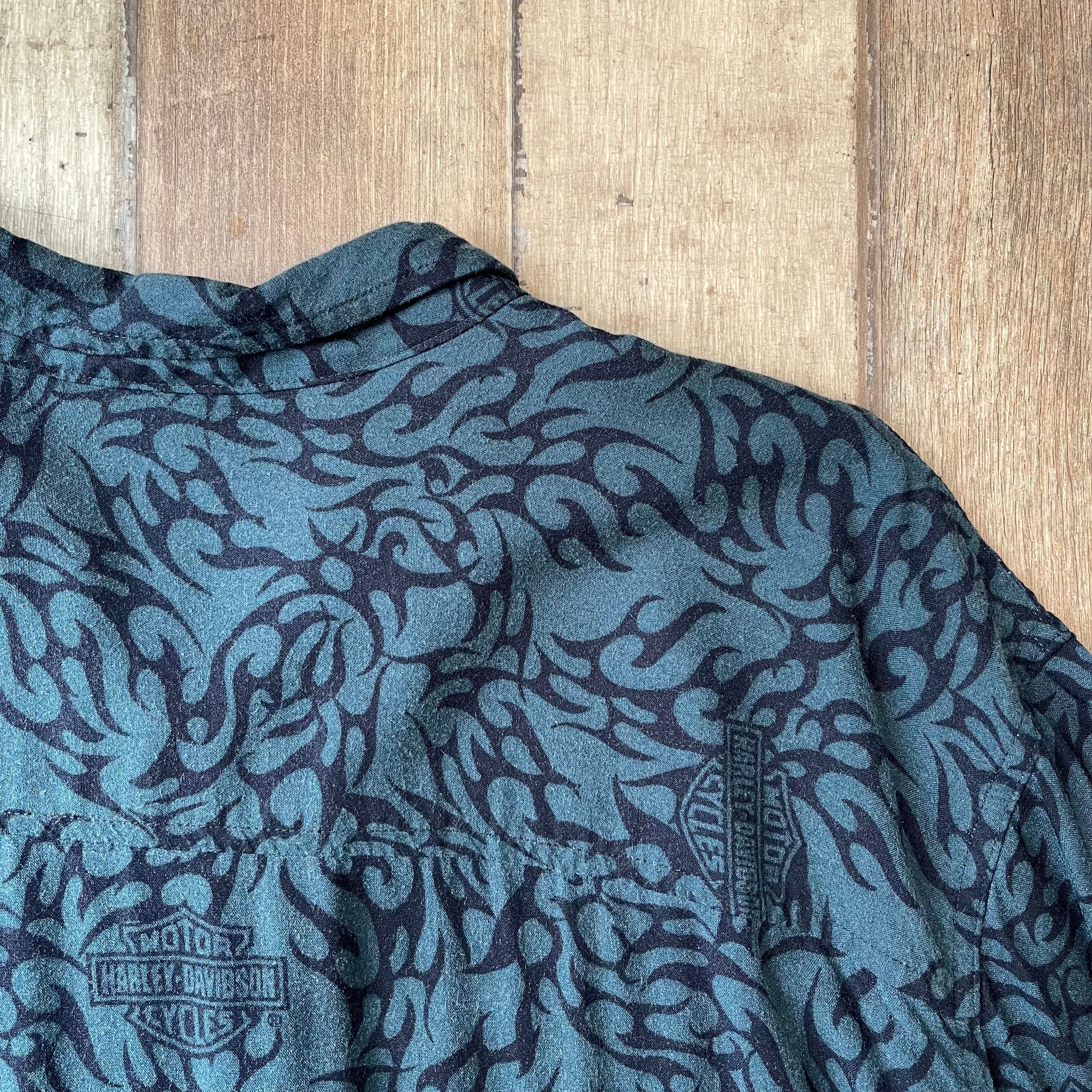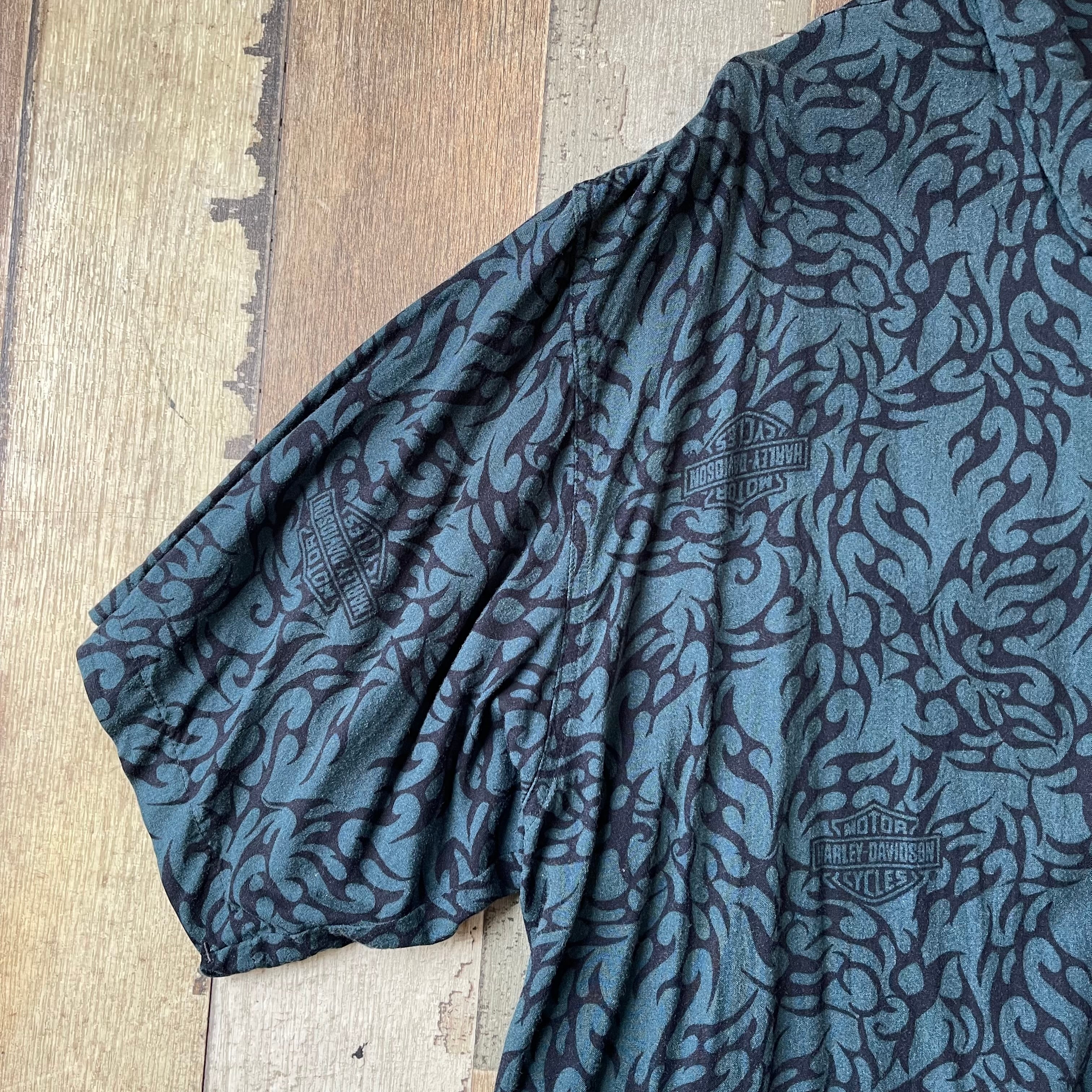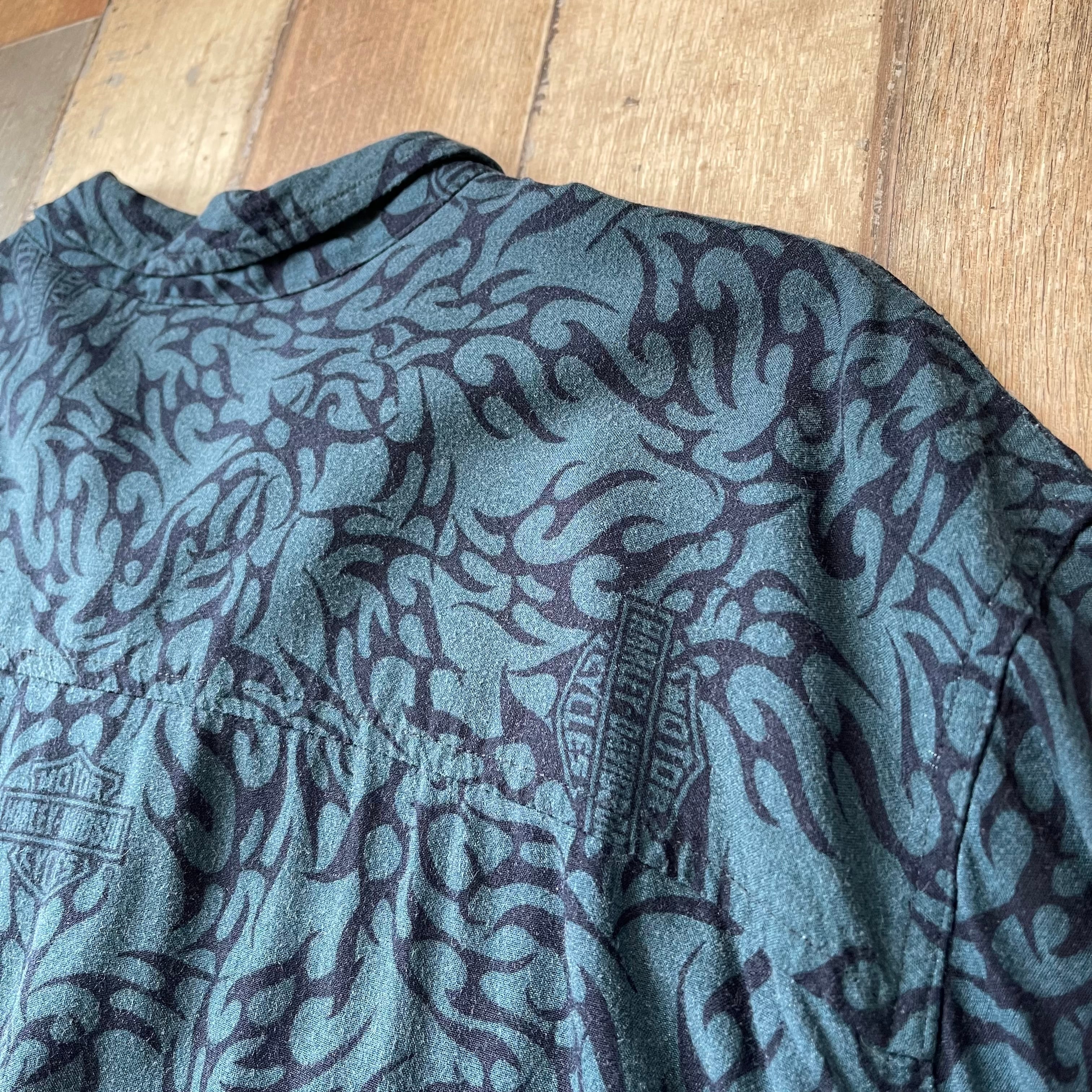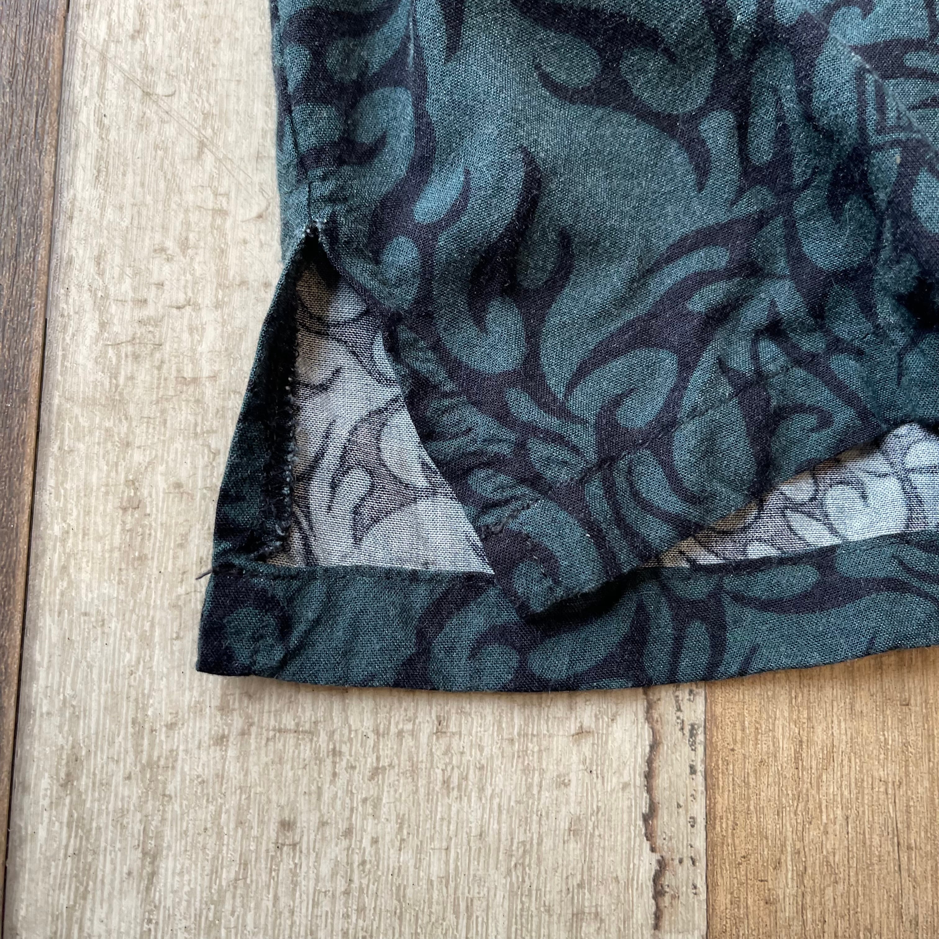 肩幅55 着丈72 身幅65 袖丈27 (㎝) ※身頃下裾あたりダメージ、後ろ身頃裾あたりスレ有り