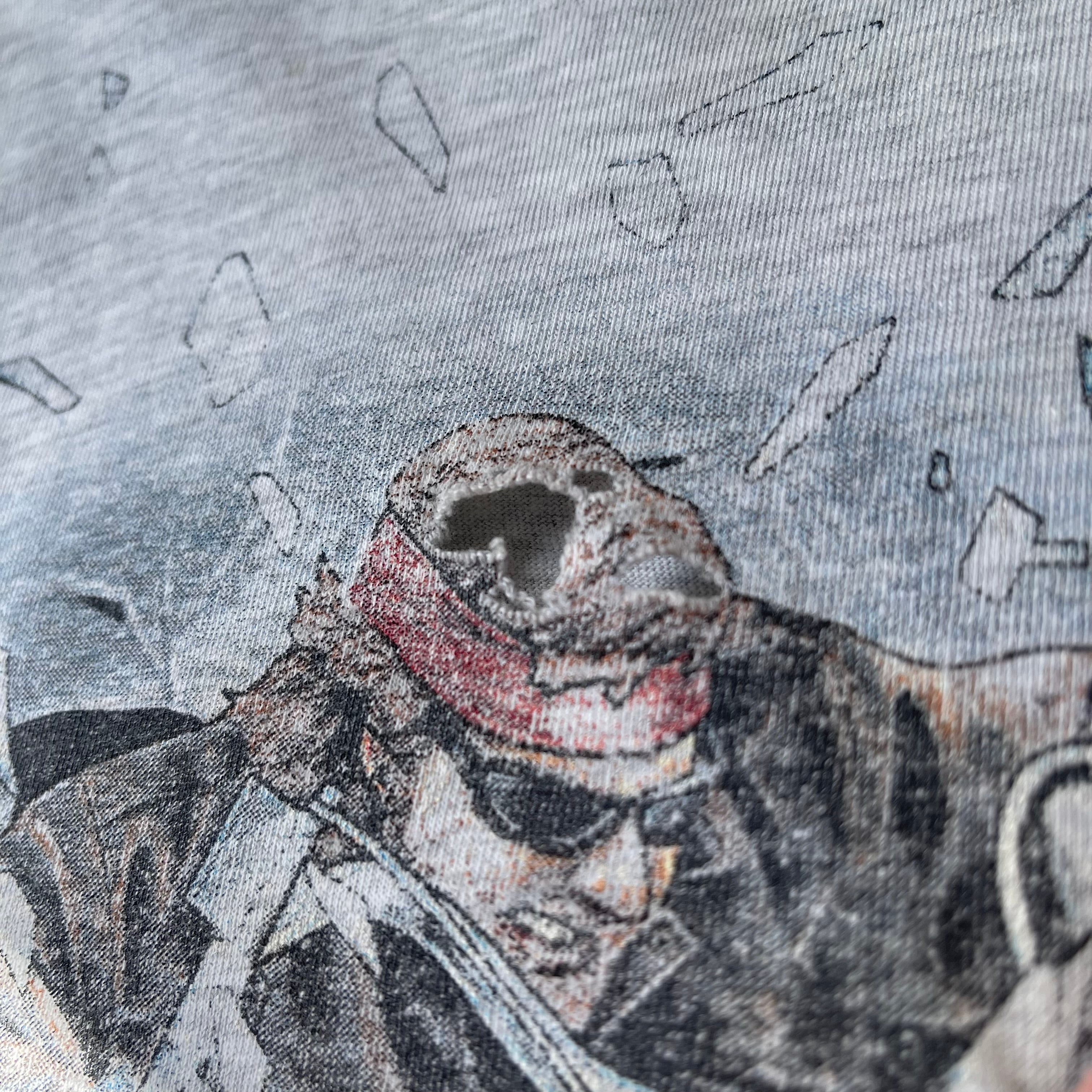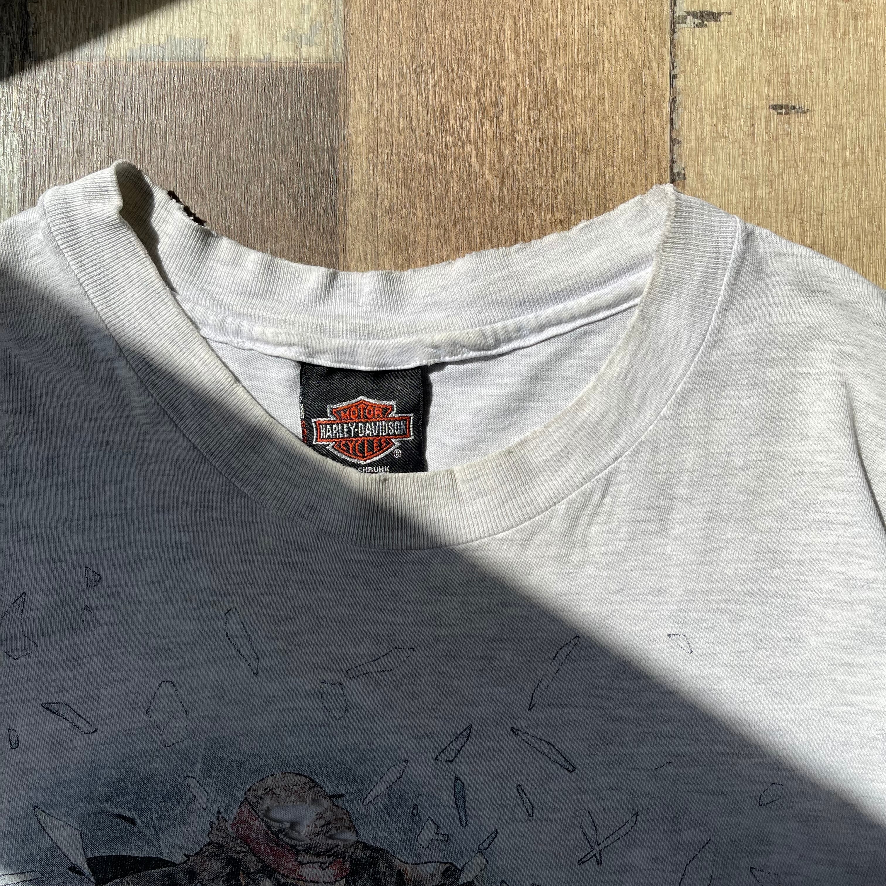 ※前身頃プリント部分穴空き・身頃汚れ有り ※首周りリブダメージ有り 肩幅50.5 着丈63.5 身幅53 袖丈18.5 (㎝)